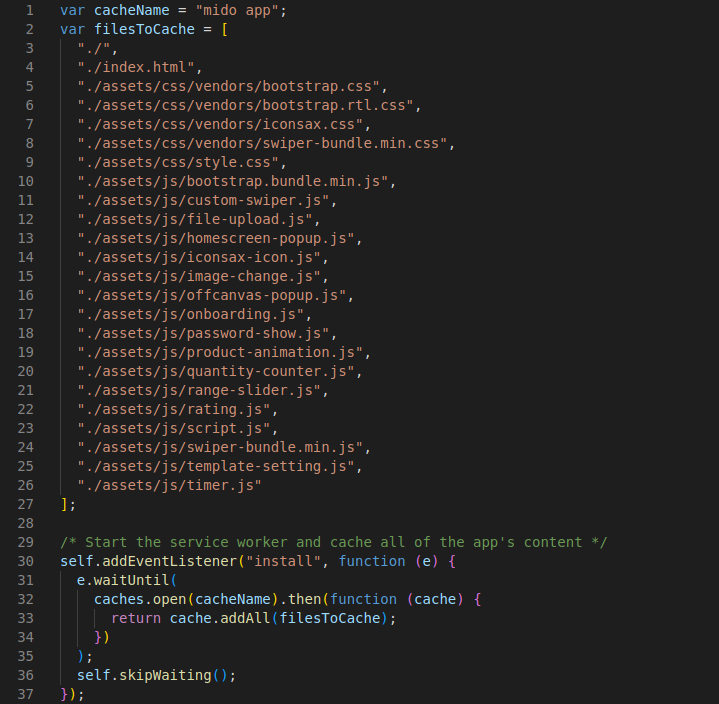 A service worker is a script that allows intercepting and control of how a web browser handles its network requests and asset caching. Here you can attached the css and js files.