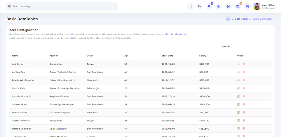<DataTable data={ZERO_CONFIGURATION_DATA} columns={ZERO_CONFIGURATION_COLUMN} pagination highlightOnHover striped />