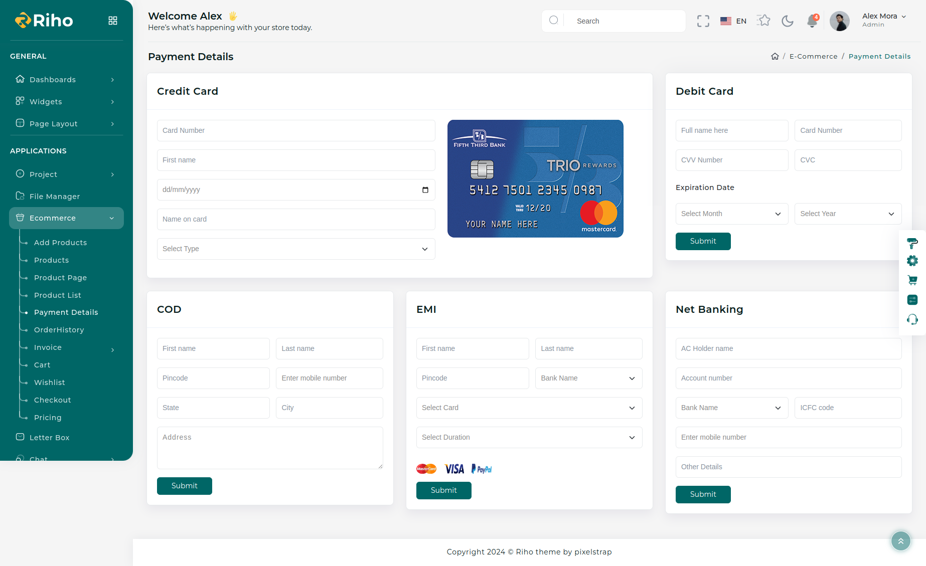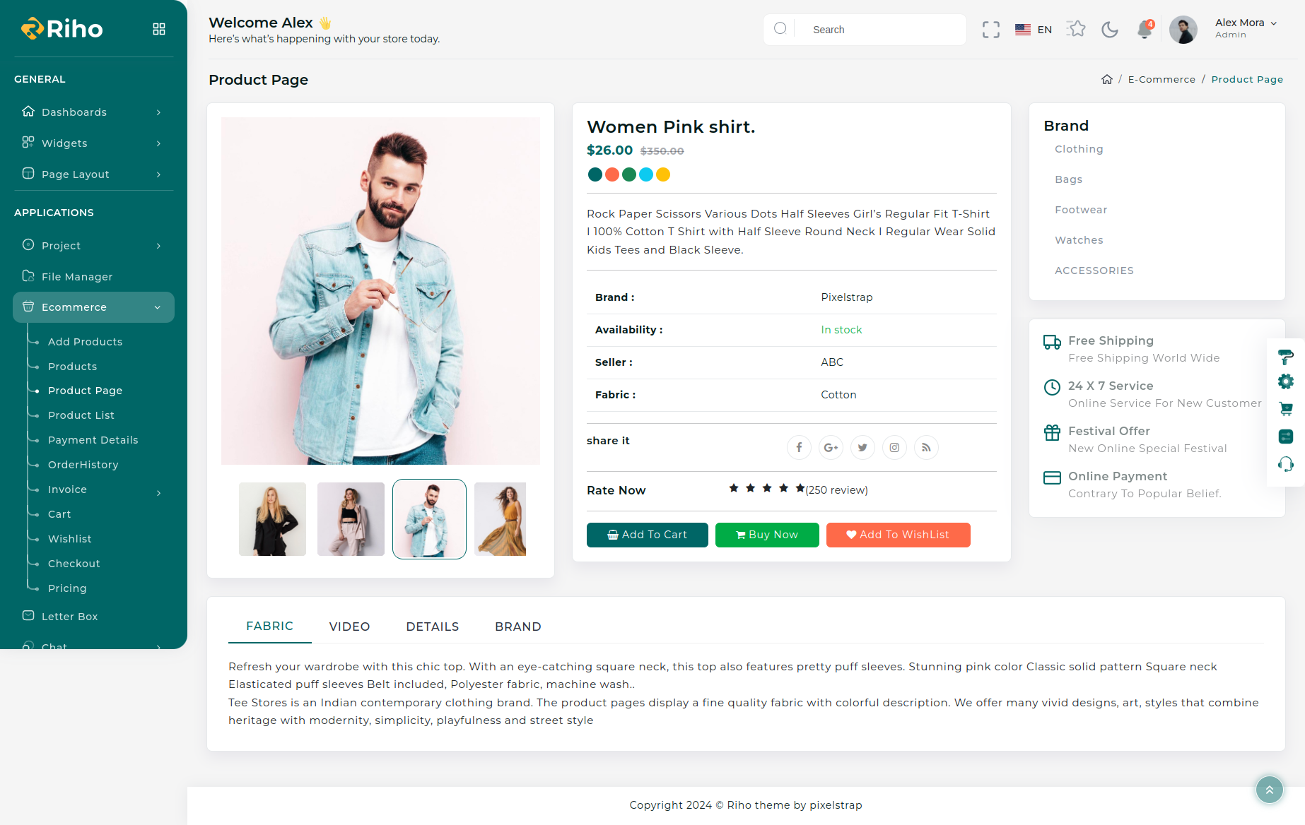 You can directly use complete E-commerce app to manage your E-commerce with ready-made functionality of Add to cart,Quick-view, and Checkout with Stripe as well as Paypal. Apart from that if you want to use it in your frontend application then you just need to change your json with your API data and you get complete workable E-commerce for your frontend.