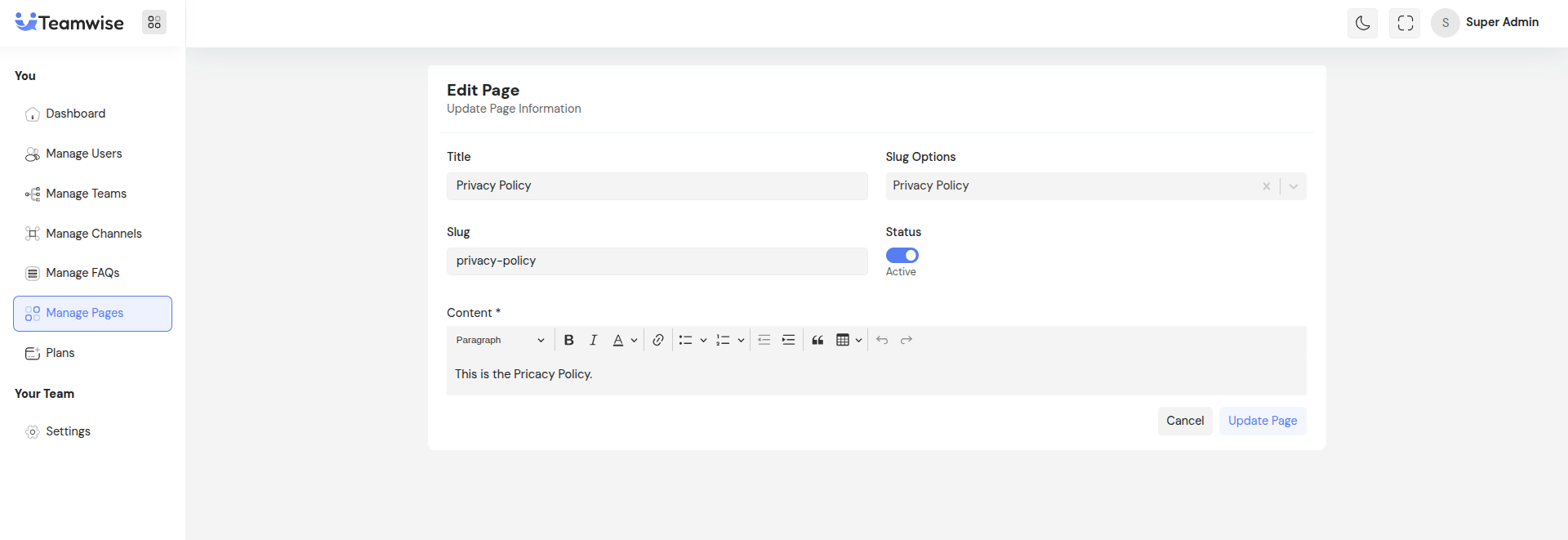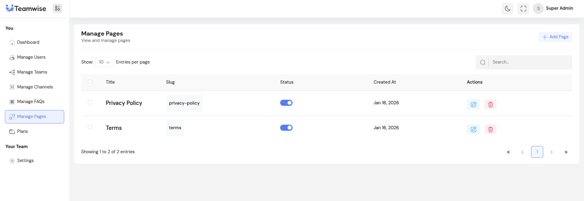 Teamwise Super Admin