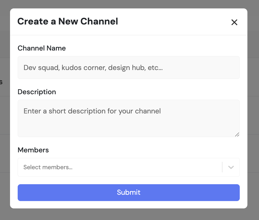 Admins can create new channels by specifying: