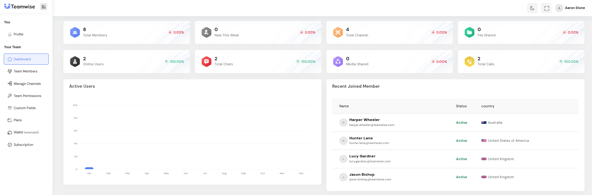 The Dashboard serves as the analytics and insights hub for team administrators, providing a comprehensive real-time overview of team activity, growth metrics, and engagement patterns. This centralized view enables admins to monitor team health, track user behavior, and make data-driven decisions about team management and resource allocation.
