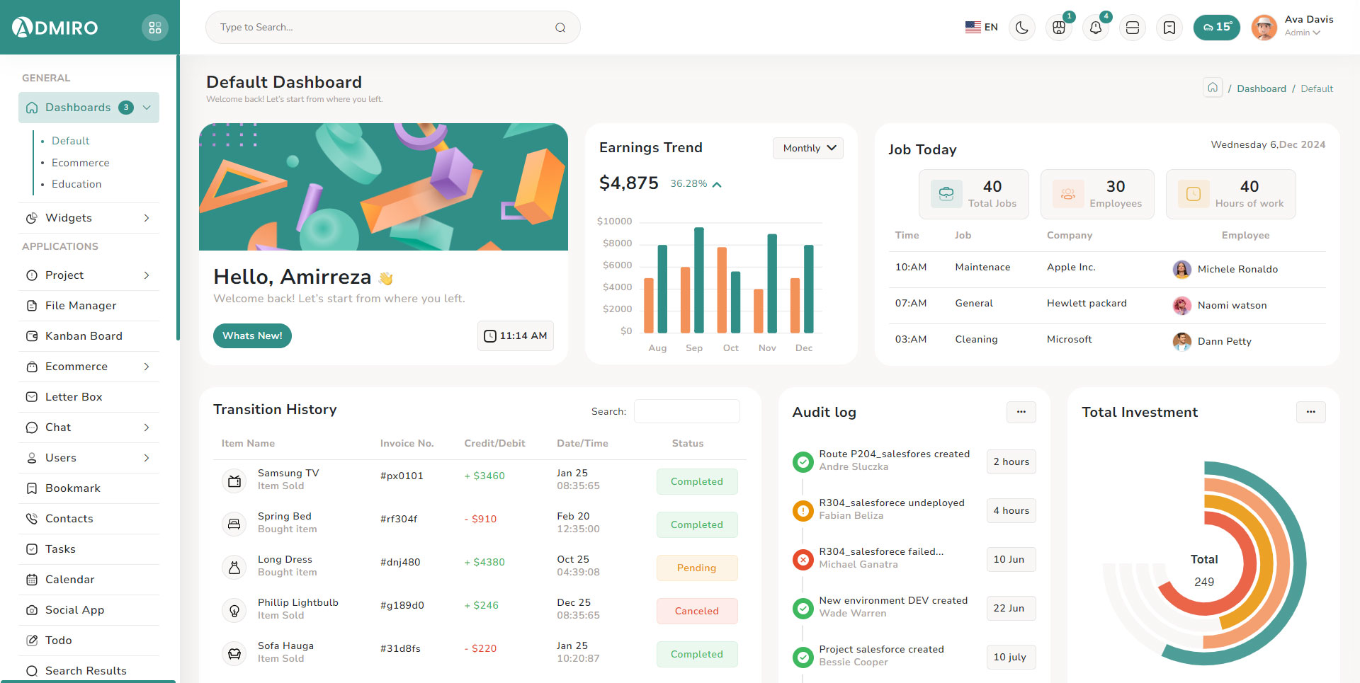Our default template layout is Vertical sidebar