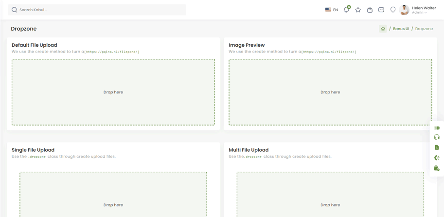 :dropzoneMessageClassName="customClass" :maxFiles="1">